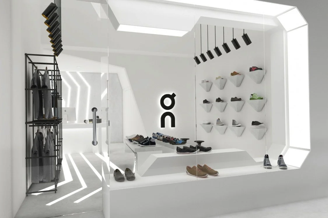 The main concept unfolds into three key elements: a) white is dominant throughout the entire space. It is critical to be able to present the products to the client and at the same time to maintain a clear and simple background to avoid clutter. This way the background remains as discreet as possible in order to allow the product to come into sight. b) linear lit elements on the floor, wall and ceiling arise from the idea of movement, which is particularly dominant in such an area as the Limassol marina. This movement is transferred into the entire concept via the linear lighting, which contrasts the white surfaces. c) with clear frameless glass on the facade, in combination with smart lighting, the entire store becomes the display window for the pedestrians. In essence, the display product is the shop itself, where the passing crowd can experience the design and product while still being outside the store.